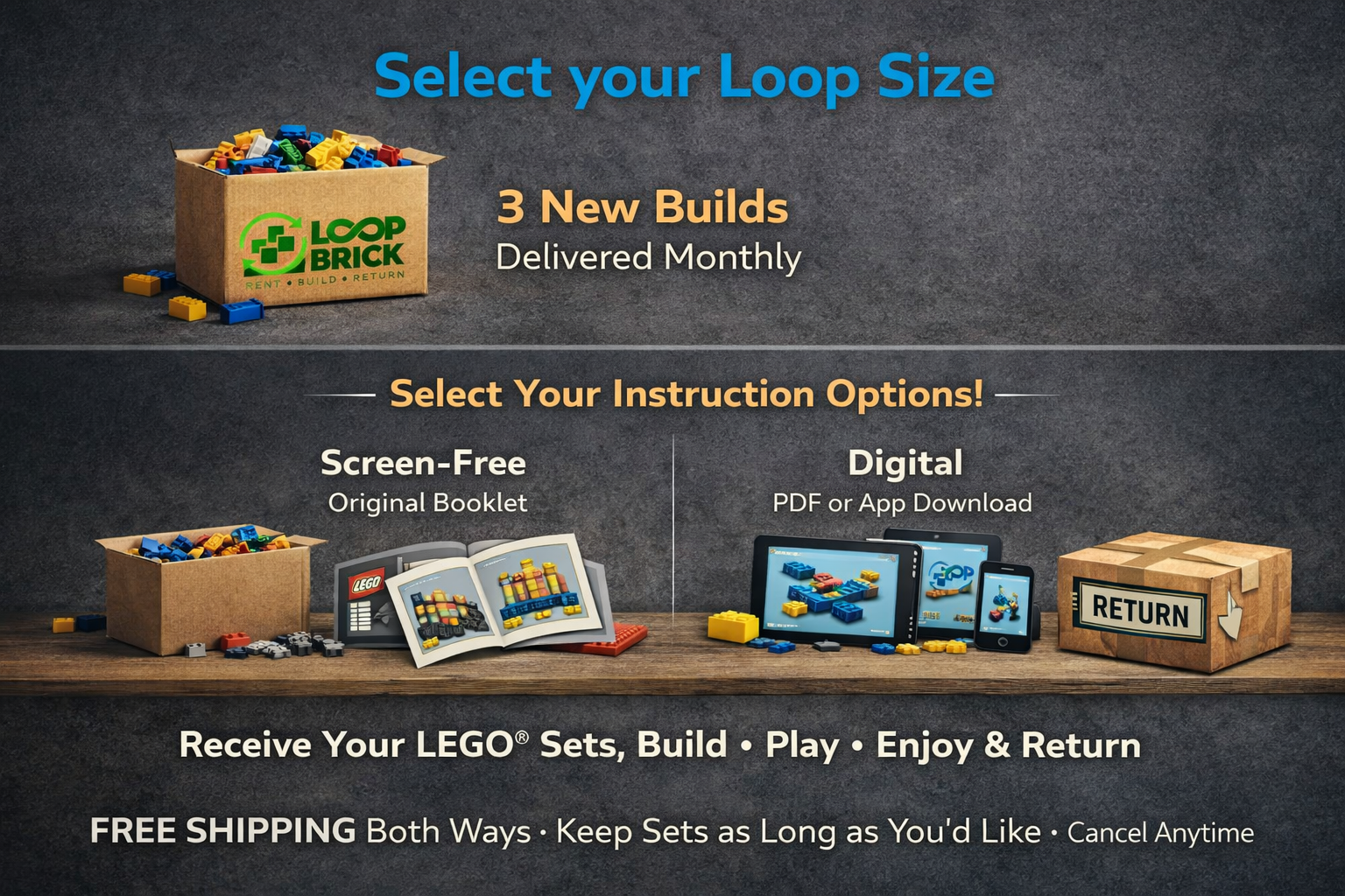 - Build your own box with single-set rentals, or let us curate your LEGO® experience with our monthly Loop plans.